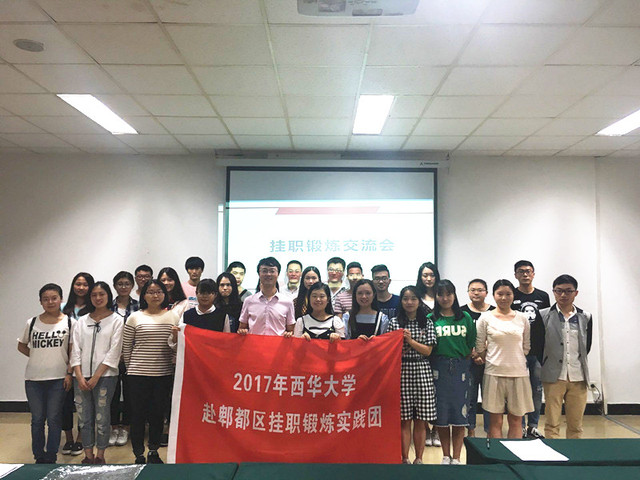 6月14日下午,2017年西华大学研究生赴郫都区挂职锻炼交流会在体育馆北会议室举行。学生工作部廖磊老师、2017年29名即将参加挂职锻炼的研究生和2016年优秀挂职锻炼研究生代表参加了此次交流会。