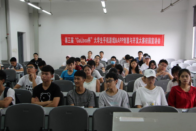 6月26日下午,成都服务贸易协会和成都四格网络科技有限公司在我校6C-322举办了第三届“GaLbao杯”大学生手机游戏App创意与开发大赛宣讲会。来自我校计算机与软件工程学院、理学院、电气与电子信息学院的同学参加了本次宣讲会。