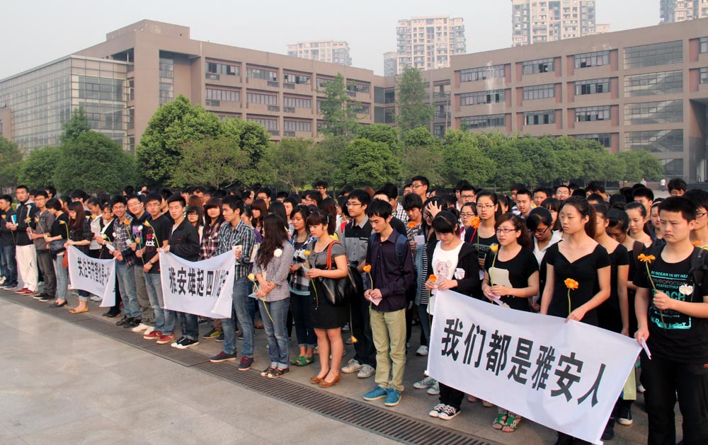 成都电视台3G直播西华学子为雅安地震灾区祈福活动