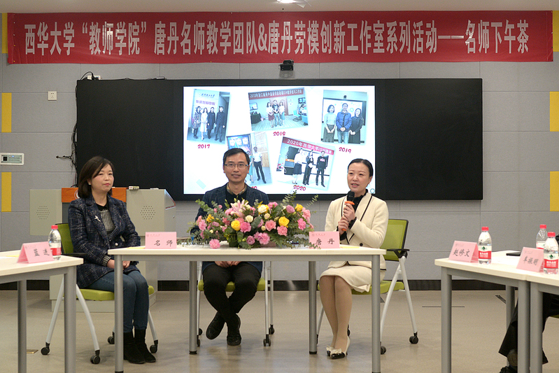 3月11日下午14:00,由教师发展中心、校工会联合举办的名师教学团队、唐丹劳模创新工作室系列活动“名师下午茶”在3E-105举行。全国优秀教师、四川省教学名师、四川教书育人名师、四川省人民政府参事、西华大学教学名师、西华大学优秀教师代表车振明、朱雯、唐岚、谢应光、吴昌东、吉驭嫔参与访谈,来自8个学院的20名中青年教师踊跃参加活动。教师发展中心主任赵修文、校工会副主席蓝进参加活动。本次活动由团队负责人唐丹主持。