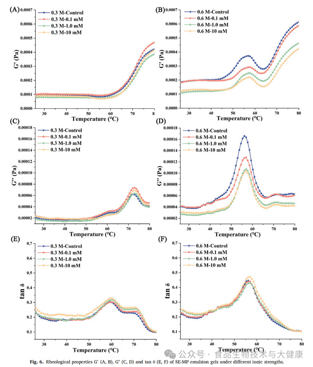 蔗糖酯(SE)是由蔗糖与脂肪酸酯化反应生成的天然低分子量非离子表面活性剂,具有优异的食品安全性与乳化性能。此前的研究发现,将肌原纤维蛋白与蔗糖酯复配使用,可提升肌原纤维蛋白在水相中的分散性及相互作用。因此,结合肌原纤维蛋白的盐依赖性溶解度及蔗糖酯的乳化特性,该研究选取两种具有代表性的离子强度条件(0.3mol/L和0.6mol/L氯化钠)与三个蔗糖酯浓度梯度(0.1mmol/L、1.0mmol/L和10mmol/L),旨在系统性阐明乳化体系与凝胶体系之间“液-固”相变的潜在机制,为乳化肉制品的质地创新提供具有参考价值的理论依据。