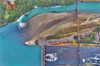 都江堰鱼嘴分水堤。 新华社记者 刘坤摄