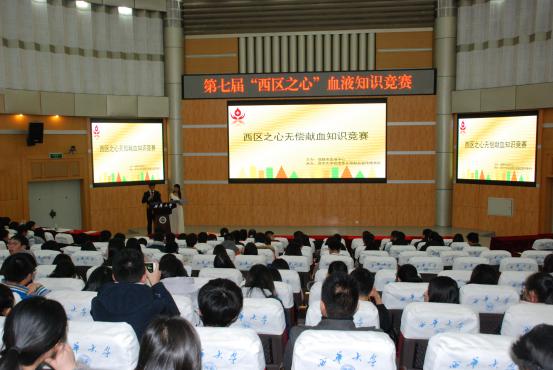 为弘扬中华民族助人为乐的传统美德,教育和引导广大同学增强社会责任感,进一步了解血液知识,积极参与无偿献血活动,12月17日下午14:00,由成都市血液中心主办,校团委无偿献血宣传服务队承办的成都市第七届高校“西区之心”血液知识竞赛在四教报告厅成功举行,共有包括西华大学、电子科技大学在内的14支高校代表队参加了竞赛,本次竞赛邀请到了成都市志愿者无偿献血宣传服务总队队长冯瑾、“西区之心”支队指导老师刘璇担任评委。