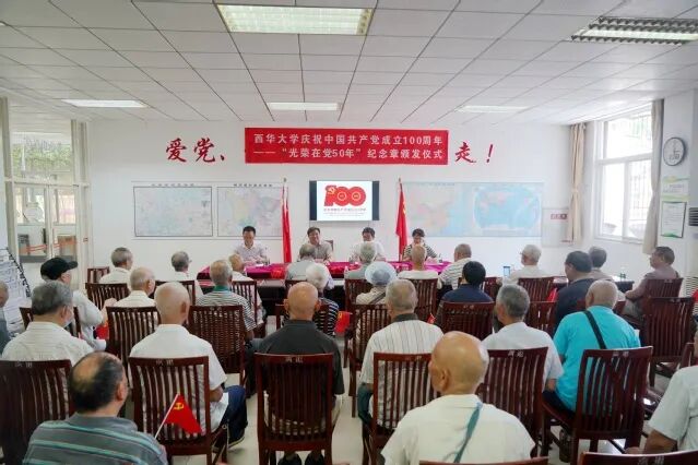 6月29日,学校在夕阳红活动中心举行“庆祝中国共产党成立100周年——‘光荣在党50年’纪念章颁发仪式”。校党委副书记王政书出席仪式并为老党员代表颁发“光荣在党50年”纪念章。