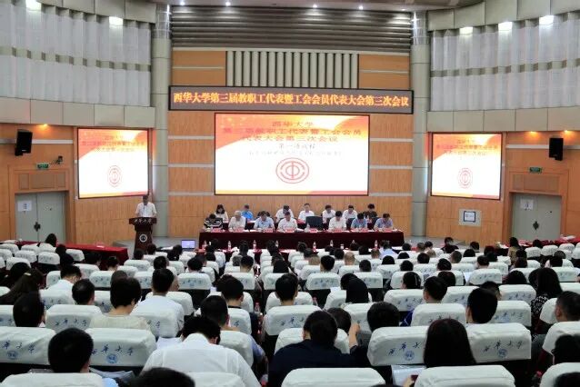 7月8日,学校在四教报告厅召开西华大学第三届教职工代表大会暨工会会员代表大会第三次会议。本次会议听取审议了《学校工作报告》《学校财务工作报告》等内容,对《西华大学岗位设置与聘用管理办法(2021-2023年)》《西华大学绩效工资分配办法(试行)》两个文件进行无记名投票,并高票通过了这两个文件。校党委书记余孝其主持会议。
