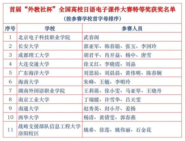 历经五个月的比赛,我校外国语学院教师杨清、黄倩雯、郭春燕组成的团队在首届“外教社杯”全国高校日语电子课件大赛中斩获大赛全国特等奖。