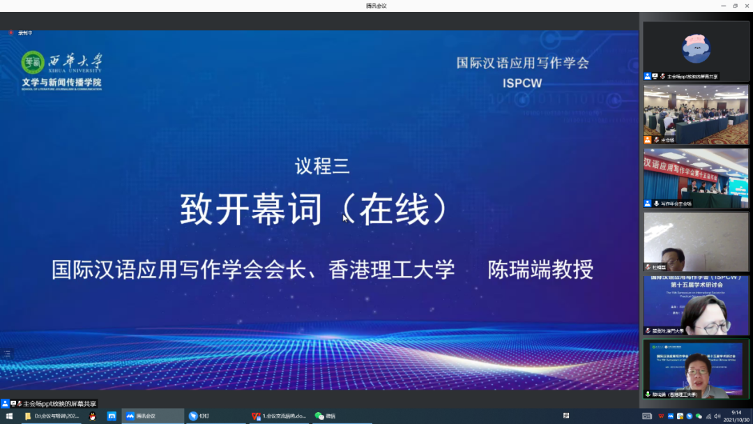 10月30日,由国际汉语应用写作学会主办,我校文学和新闻传播学院承办的“国际汉语应用写作第十五届学术研讨会”在成都召开。研讨会为期两天,以新时代场域中应用写作理论与教学的时代功能和价值为主题,98位专家学者通过视频会议方式进行交流,共同探究学科学术问题,探索应用写作发展新道路。