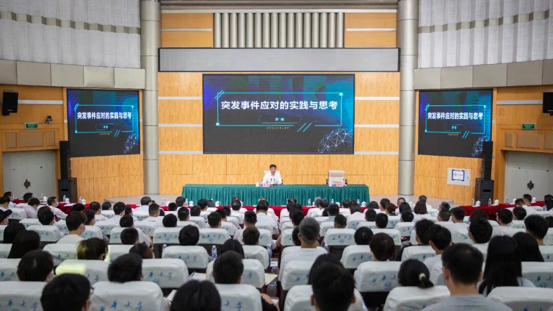省委教育工委副书记、省教育厅党组书记、厅长邹瑾,应急厅厅党委委员、副厅长王峰,省教育厅机关党委书记、党组成员李志刚,省政府办公厅、省安办、省教育厅相关职能部门负责人,四川大学、西南交通大学、西南石油大学、成都理工大学、四川师范大学分管安全稳定的校领导和应急管理专业相关学院负责人,以及学校相关职能部门负责人和四川省应急管理学院的师生代表参加了报告会。