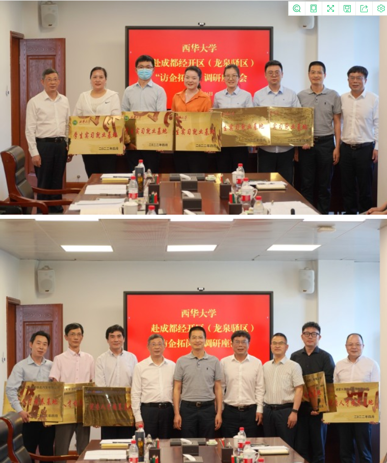 为贯彻落实党中央、国务院关于高校毕业生就业工作的决策部署,4月26日,校党委书记余孝其、校党委副书记张力一行前往成都经开区(龙泉驿区)调研,与成都经开区区委常委、政法委书记付光文、经开区相关职能部门负责人及属地企业代表、校友代表座谈,就深化“政校企”科技创新、人才培养合作,了解企业用人需求,积极开拓就业渠道和就业岗位进行深入交流。