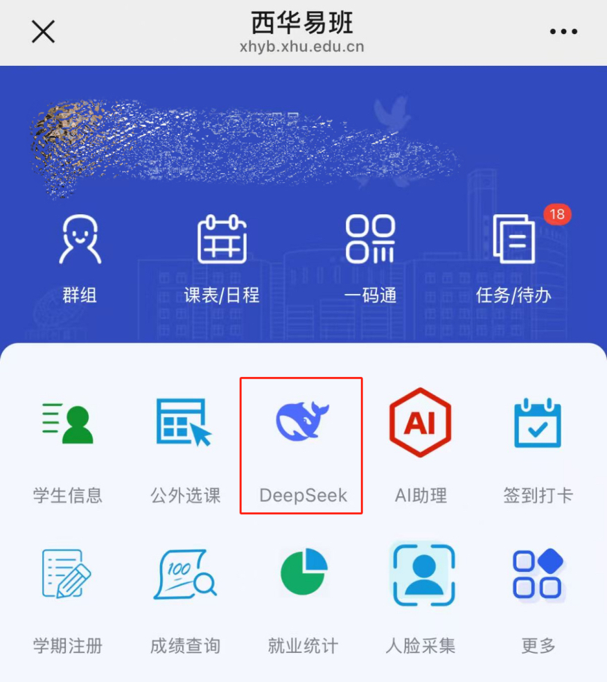 登陆方式二:通过“西华易班”点击选择DeepSeek