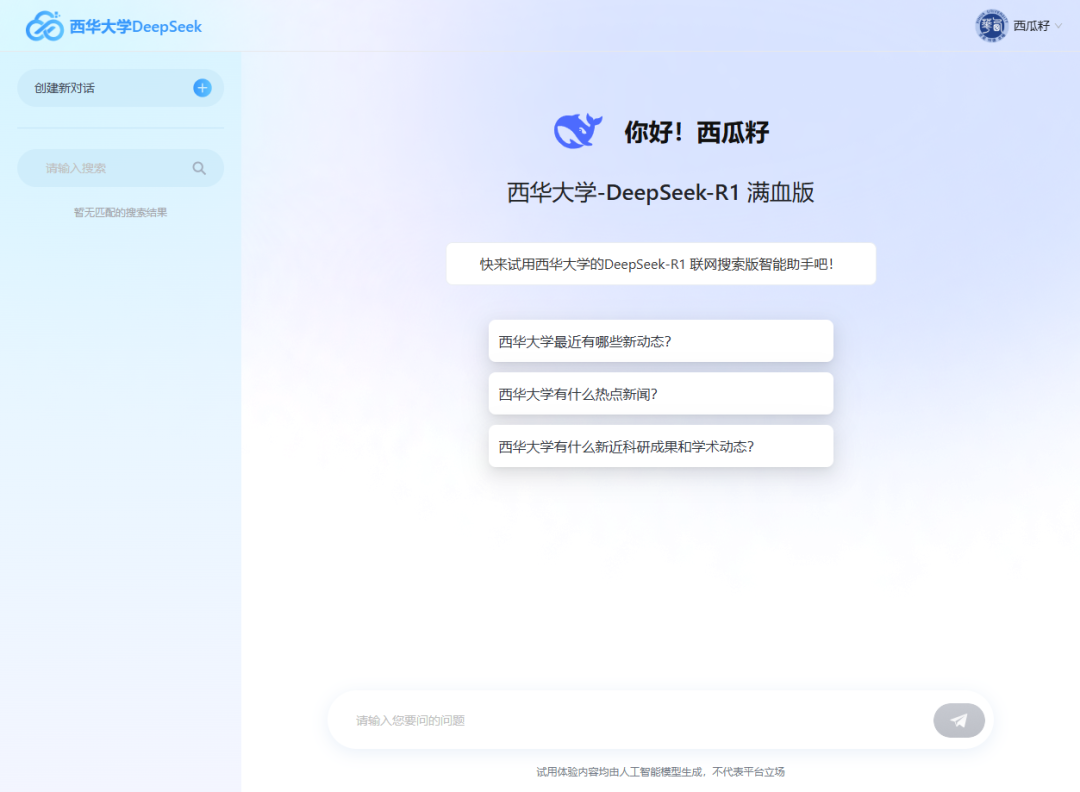 新学期,西华大学DeepSeek满血版上线啦!