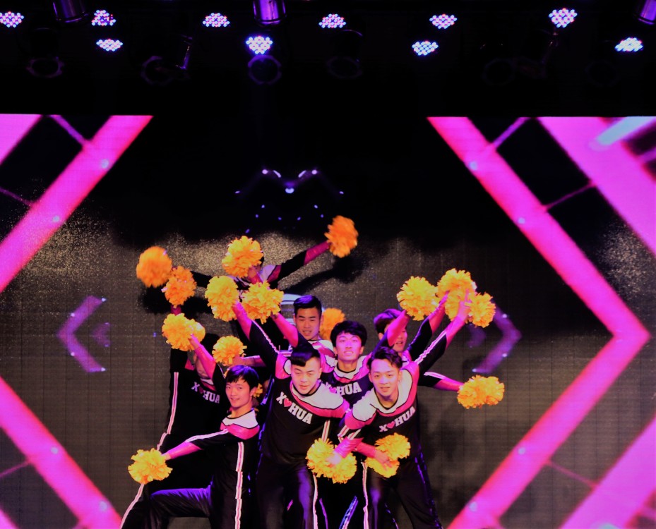 各学院拿出了十足的精气神为晚会助力,为新时代喝彩。第一篇章“一如年少模样”以体育学院的《男子花球》为开头,力与美的完美结合展现出研究生的活力与激情,创意舞蹈《威廉小鬼舞》轻松活力、童趣十足,在材料科学与工程学院的相声《与时俱进》逗与捧之间,引得全场笑声不断。