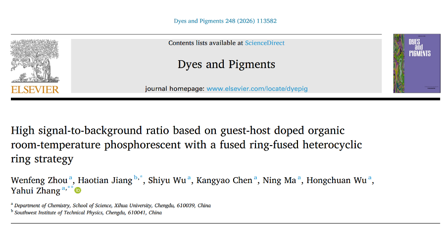 此外,张亚会副教授团队还在《Spectrochimica Acta Part A: Molecular and Biomolecular Spectroscopy 》(中科院二区)和《Dyes and Pigments》(中科院二区)发表研究成果。通过稠环调控RTP性能,实现信息多重信息防伪技术和指纹识别技术。西华大学为第一单位,张亚会副教授为通讯作者,2024级硕士研究生周文峰为第一作者。