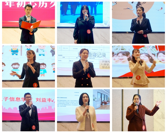 “三尺讲台铸栋梁,百年风华育英才”“教育者的使命与荣光”“不忘初心,将爱传承”“以爱育人,以身垂范”“俯首甘为牛 耕耘三尺园”“师者,选择温暖、选择照亮”“坚守教育初心,潜心立德树人”“成为我,成为我们,成为无限可能”“坚守新时代青年的精神’上甘岭’”“用心用情育桃李,青春无悔绽芳华”“点亮理想的灯,照亮前行的路”……演讲过程中,参赛老师以饱满的热情、富有激情的演说、朴实无华的语言诠释着自己对“以德立身、以德施教、严以律己、为人师表”的理解,他们或歌咏榜样,或抒师生之情,或倾诉衷肠,或讲述故事,只为坚守一份教育者的初心,成就一个立德树人的梦想。感人肺腑的挚言,倾注爱心的故事,深深感染了在场的每一位观众。