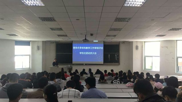 4月16日中午,迎接本科教学工作审核评估学生社团动员大会在4A-204召开,校团委温超老师、西华大学学生社团联合会、89个学生社团负责人、挂靠学院分管社团工作的学生干部参加了大会。
