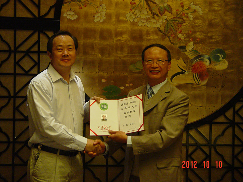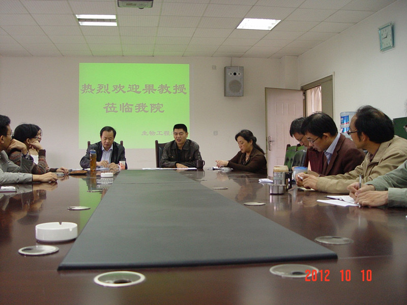 10月10日下午4点,中药标准化技术国家工程实验室主任、中国科学院上海药物研究所果德安教授来校,受到学校领导热情欢迎。校长孙卫国为果德安教授颁发了西华大学特聘客座教授聘书,生物工程学院党政领导参加了授聘仪式。 孙卫国校长向果德安教授(左一)颁发特聘客座教授证书 果德安教授与学院教师作学术交流 |