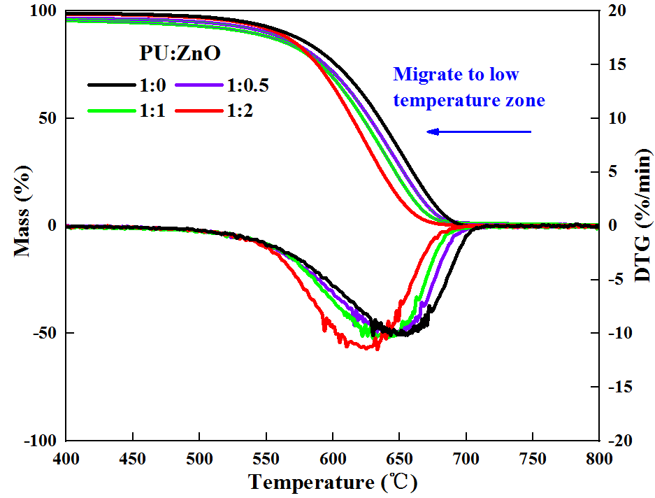 Figure 5. PU oxidation gas emissions at different ZnO ratios