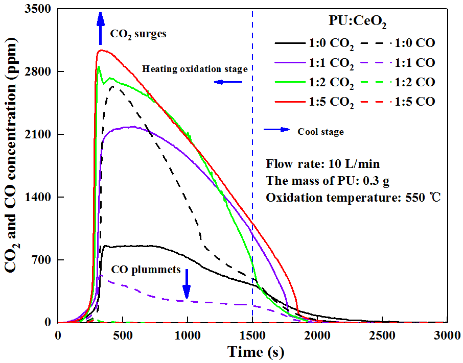 Figure 3. PU oxidation gas emissions at different CeO2 ratios