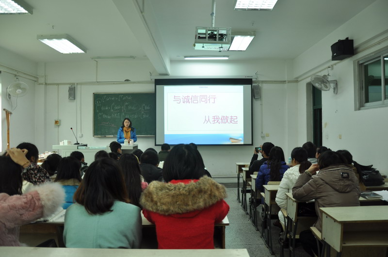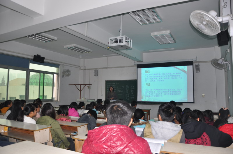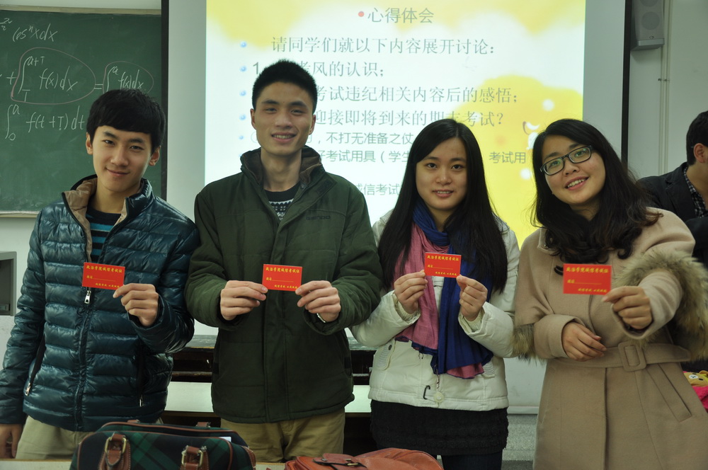 为了营造诚信考试的良好氛围,打造诚信考试优良学风,倡导广大同学认真复习备考,并在全院形成浓厚的复习迎考氛围,政治学院于11月中旬启动到现今举行了以“与诚信同行,从我做起”为主题的考风考纪系列活动。 活动之一:学生党员、学生干部挂“诚信学生牌”考试 考试不仅是对学习水平的一种检测,也是对学风考风的检验,更是对学生品行的考验。为加强诚信考试教育,学院对学生党员、学生干部提出了”增强荣誉感,强化党员意识,充分发挥学生党员干部的先锋模范作用“的要求。要求“学生党员、学生干部挂牌考试”,即学生党员和学生干部在考试时主动佩戴诚信考试牌,明确身份、大胆亮出身份。 在召开的全院学生党员、学生干部诚信考试动员大会上,学院党委副书记黄潇强调,学生党员和学生干部具有与普通学生不一样的身份,作为学生党员要起到先锋模范作用,带动普通同学,引领考场诚信考风。随后,学院学生会主席王小川带领同学们宣誓:“考试期间主动佩戴诚信考试证,亮出身份,自觉接受监考老师和同学们的监督,在全体学生中形成一种'遵守考纪光荣,违纪作弊可耻'的氛围。” 对于这项倡议,学生党员、学生干部普遍反应积极。“挂上诚信考试学生牌子,亮出身份,能使我们时刻提醒自己注意学生党员、学生干部形象,不仅在考试中起模范带头作用,在平常的学习中也同样如此。”一个学生党员说道。通过此项举措有利于形成普通同学与学生党员干部相互监督、学生党员干部相互监督等多种形式的监督考察,无形中构成了一个公平、严肃、明朗的考试氛围。 “挂牌考试“只是一种手段,目的是端正考风带动学风建设,也是学院加强考风学风建设的一种有益尝试。 活动之二:召开诚信主题班会 辅导员深入各班级相继召开主题班会,进行宣传引导。主题班会形式丰富多样,包括案例解读、小组交流、同学自主发言、辅导员点评等等。同学们结合近期校内发生的诚信问题的案例进行了深入的探讨,大家一致认为诚信是做人做事的基本准则, 考试作弊行为是对他人的不公平。通过主题班会辅导员不仅仅说明要求,更要让同学们明白诚信应考意味着什么,并从考试的作用、知识的使用、个人道德等多方面开展教育工作。同时带领大家学习《西华大学考试违规处理办法》,对学生在考试中涉及到的现象进行了细致的讲解,说明了前期个别违纪案例的处理决定。特别对学生干部做出了特别强调,要求他们以身作则为诚信考试的氛围起到模范带头作用;要求成绩优异的同学更应该严格律己,带领同学们认真备考。 活动之三:签订诚信考试承诺书 考试诚信是为人诚信的重要体现,签订诚信承诺书,目的是为了维护“诚信、文明、自律、自觉”的考风考纪,携手营造诚信光荣、作弊可耻的考试氛围,也是为了进一步营造良好学风。全院同学积极响应并在主题班会现场签订《诚信考试承诺书》,表示要严格自觉遵守考场纪律,铭记考试规则,恪守诚信,坚决杜绝各种考试舞弊行为,共同营造“诚信考试光荣、违纪作弊可耻”的考试氛围,争当一名诚信的大学生。之后学院将承诺书张贴在学院宣传栏里时时提醒大家。 政治学院一直注重学生的考风考纪,希望通过此次的主题教育活动在思想上让同学们树立起“求真务实、明礼诚信”的思想理念,在行动上倡导同学们用真实可信的成绩,回报自己一学期以来的努力,为创建良好校园氛围做出自己的努力。