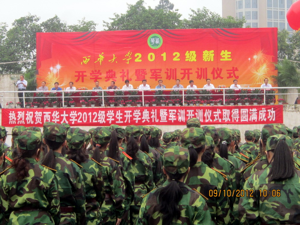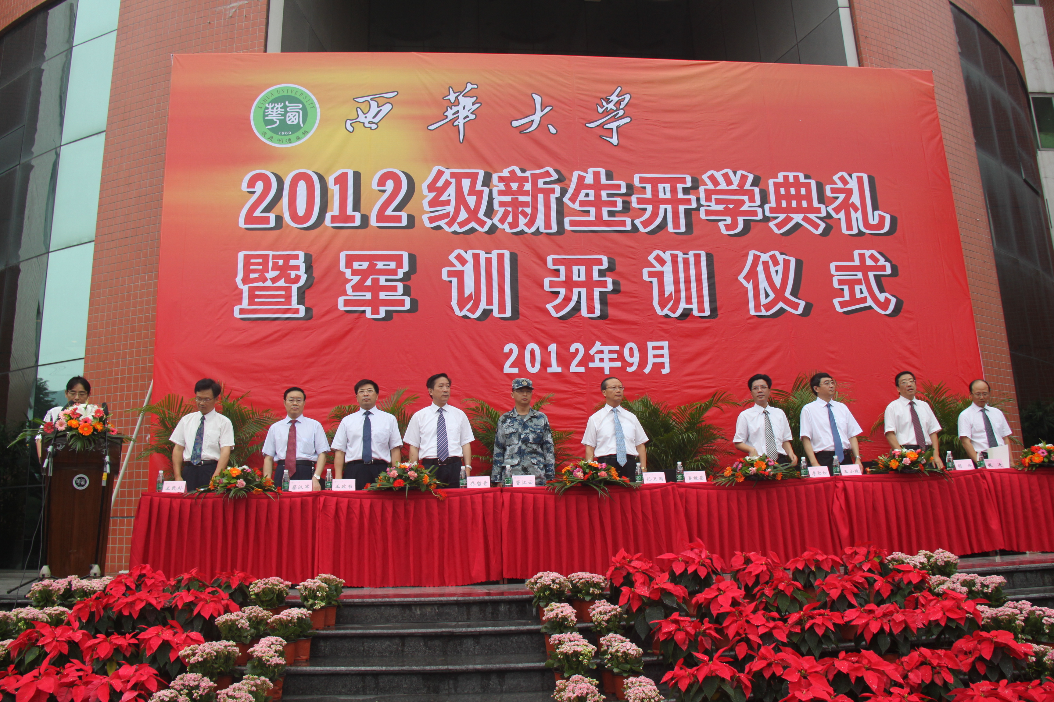 9月10日上午,我校2012级新生开学典礼暨军训开训仪式分别在校本部、彭州校区、人南校区举行。 上午8:30,我校2012级本科及研究生新生开学典礼在校本部明德广场举行。校长孙卫国,校党委副书记王民朴,副校长李劲松,校党委副书记王小林,副校长乔哲青、胡丹、王政书,正厅级调研员蔡汉军、钱进,中国人民解放军95607部队政治部主任姜根荣上校出席了典礼。校党委副书记、纪委书记王民朴主持典礼。 在庄严的升国旗仪式后,典礼正式开始。孙校长代表学校党委、行政以及全校师生向2012级的新同学们表示热烈的欢迎和衷心的祝贺,并向全校教师致以节日的问候。孙校长指出,经过3年高中的学习和奋斗,大家来到了西华大学,从互不相识的陌生人变成了在同一个校园中学习、生活的一家人。大学做什么?应该怎样度过大学四年的学习生活?孙校长代表学校对新同学们提出了三点期望:第一,培养责任,学习做人。从今天开始,同学们要学习承担责任,要有浓烈的社会责任感;要学习如何做人,做一个人格健全、有追求的、高尚的人;要培养团队精神,学会沟通,学会表达自我。第二,磨练自我,学会做事。学会做事要从自我的内务、寝室的清洁做起;要学会做小事,只有把小事做好,将来才能做大事。第三,追求上进,学会学习。学习不是简单的做笔记或考试,同学们要牢记世界知名教育家约翰•杜威说的“学习是基于老师指导下的发现,而不是信息的传递”这句名言,要在老师的指导和帮助下,以发现式的、创新式的态度去求知、去学习,要敢于怀疑,敢于挑战,敢于提问,敢于探索。此外,孙校长还指出,希望同学们通过军训,向教官们学习忠于祖国、忠于人民、忠于党的良好品质,培养强烈的团队精神和组织纪律性。最后,孙校长寄语全体新同学,希望他们在校期间刻苦学习,奋力拼搏,努力成为西华大学的优秀名片。 中国人民解放军95607部队政治部主任姜根荣上校讲话。他指出,军训是大学生在校期间接受国防教育、培养爱国主义精神的一个基本形式。教官们要继续发扬优良的战斗作风,严格训练,认真管理,科学施训,把军队的基本常识教给同学们,提高同学们的国防意识,培养同学们坚定的信念和刻苦学习的精神,为今后报效国家,成为国家的栋梁之才打下良好的基础。 教师代表、交通与汽车工程学院教授徐延海代表全校教师向新同学致辞。他对新同学们说,西华的美在于“天行健,君子以自强不息;地势坤,君子以厚德载物”的西华精神。这种精神激励着一代又一代的西华人迈向成人成才。作为一名教师,愿倾注所有,全力以赴,协助同学们用激扬的青春去奏响最响亮的音符。 校学生会主席刘嗣立,本科新生代表、机械工程与自动化学院2012级机械设计制造及自动化专业沈睿文,研究生新生代表、生物工程学院2012级食品工程专业陈凌分别在典礼上作了发言。参训学生代表、交通与汽车工程学院张鸿天带领所有参训同学宣读了军训誓词。 上午10:30,我校2012级专科新生开学典礼分别在彭州校区、人南校区举行。 开学典礼暨军训开训仪式现场 主席台 校长孙卫国寄语新生 整齐的队列 升旗仪式