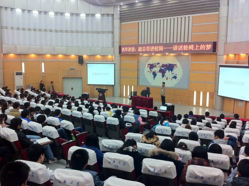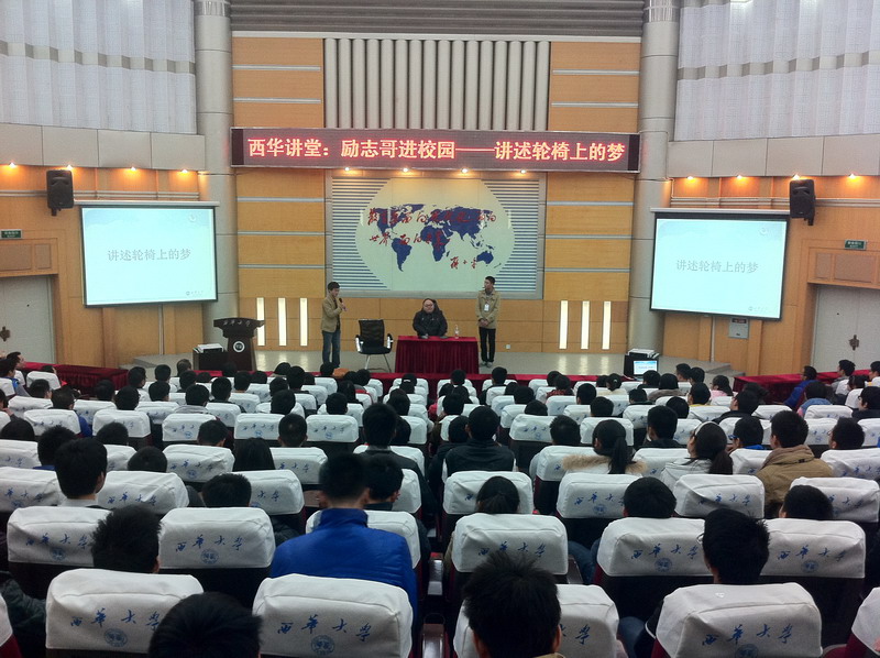 “无论贫穷或是富贵、痛苦或是快乐、得意或是失意,所有这些经历都会成为你未来人生的财富,只要不放弃希望,总有一天有机会成就自己……” 近日正能量微电影《轮椅上的梦》主人公董建的故事在网络上引起强烈反响,11月29日,董建走进西华大学,同500余名师生面对面分享成长的体会。他轻松自信的状态和简单朴实却深刻的话语,让在场师生十分感慨,现场掌声雷动,气氛非常热烈。 身残志坚,奋力追梦 董建两岁时被确诊患有“进行性脊肌萎缩症”,从此便进入了不同寻常的人生模式。即便是一路坐着轮椅读书,他还是以优异的成绩进入大学。但是大一一次粉碎性骨折的意外,彻底毁灭了他继续读书的愿望。静卧数月后,他发现只有两个手指头还能够由自己支配…… 在一切仿佛都破灭的时候,坚强的董建依然没有放弃。他开起了淘宝店,用两根指头操作鼠标来完成打字,修图,上货等一系列工作。他用精益求精的态度,让自己的“lucky之家”在众多淘宝店中脱颖而出。如今,他的淘宝店已是双皇冠,月营业额达25万。他不仅实现了自己的创业梦,还帮助其他残疾人解决就业问题。 董建励志创业的微电影在网络上迅速走红,两周内点击破百万。网友纷纷表示“看到他,觉得自己的抱怨多么惭愧”、“不仅是年轻人值得学习,我们中年人都该向他学习,生活中谁没有挫折,但是他对待挫折的态度却大不同”、“真想跟励志哥面对面聊聊天!” 战胜挫折走出低谷,梦想并不遥远 “读大学是我觉得人生最有希望的阶段,我想我可以用知识的力量让自己变得更加强大,即使我身体不方便。”董建说,“但是一切像是瞬间坍塌,我不知道我能做什么,无比迷茫。就像在座的各位同学,相信你们也有过或者正在迷茫。可是即便迷茫,我心里从没有放弃过希望,我相信如果有机会,我还是可以做得很好,找到自己的价值。” 面对学生们关于梦想、如何战胜挫折走出低谷、如何成就自我等问题,董建用自己亲身经历和感悟一一作答,他说:“所有好的坏的经历,都不要看轻它,不要浪费,每一件要做的事儿,都去学习、做好,这一切终有一天你会用到,成为帮助你实现梦想的基石。” “董大哥竟然这么幽默开朗,真是让我既意外又崇拜!他的乐观和勇敢、自强不息成就了他的自信,他的自信和积极深深感染了我!他让我懂得人是自己救赎自己的意志而成就的。”西华大学电气信息学院学生晋如华说。 “之前在网络上看到董建的微电影后就深为震撼,他的确为身边的励志典范。”校团委相关负责人介绍说,“当代大学生面临就业压力很大,同学们难免会产生消极思想,励志哥面对面的交流,可以让同学们真真切切的感受到董建从点滴中传递出的正能量,相信这个交流对每一位同学意义都很大。”据悉,我校为“励志哥”董建走进大学校园的第一站,随后他还将前往成都理工大学等其他院校与同学们进行交流。 另悉,这部反映董建励志故事的微电影《轮椅上的梦》在刚刚结束的2013成都微电影金沙奖上获得了成都单元“最佳城市人物奖”。 相关链接: 网易:“励志哥”走进高校 乐观积极触动大学生