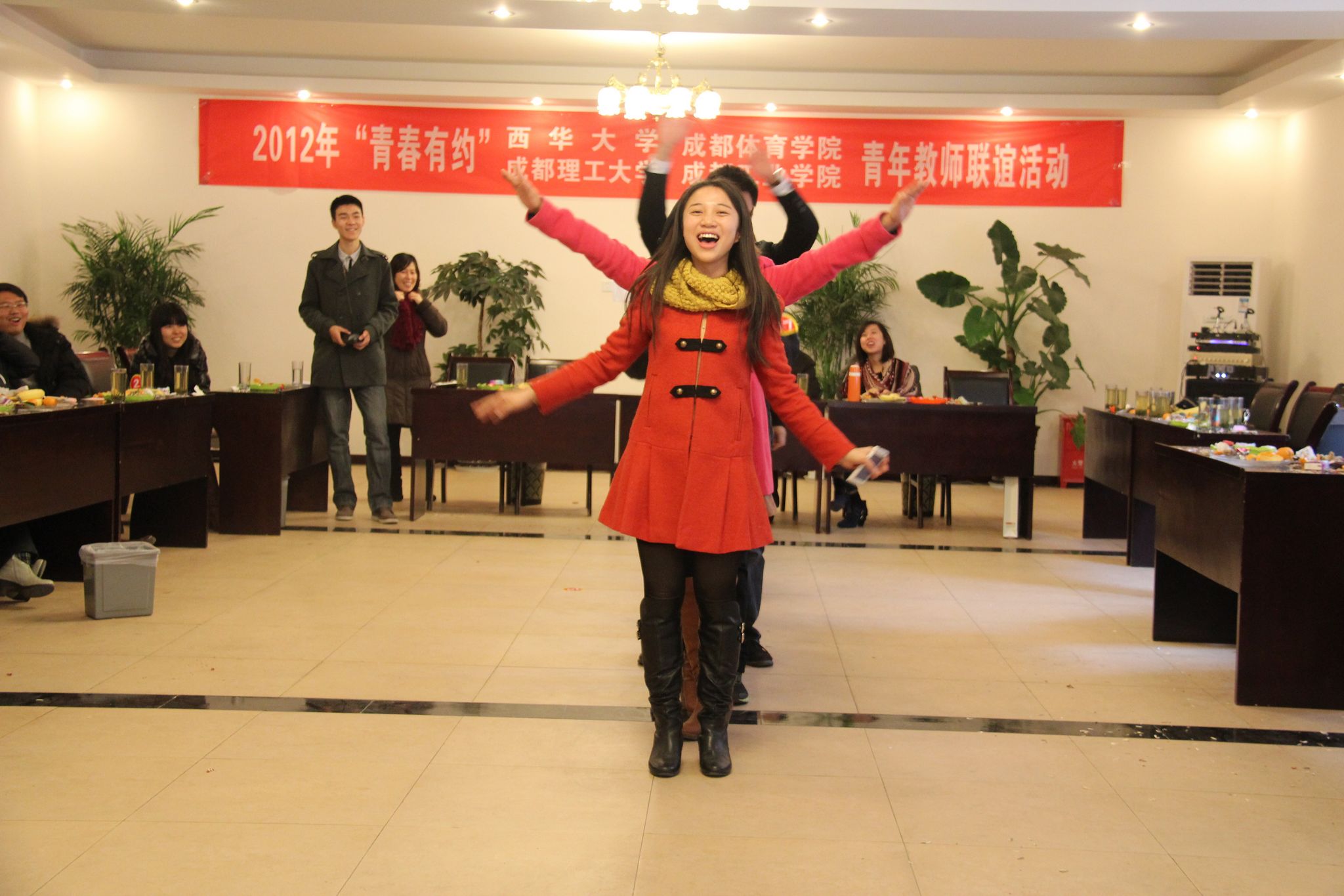 | 11月23日上午10:00,郫县西御园乡村酒店里一片欢声笑语,来自西华大学、成都理工大学、成都体育学院和成都工业学院的50余位青年教师参加了由4所高校工会联合举办的2012年“青春有约”青年教师联谊活动。此次联谊活动通过自我介绍、互动游戏、才艺展示等环节,搭建相互沟通交流的平台,拓展青年教师的交友渠道,给众多优秀单身青年教师提供扩充自身人脉和邂逅知音的机会。校工会常务副主席王代言,校工会副主席、女工委员会主任张智华出席了此次活动。 活动丰富多彩、精彩纷呈。在简短的自我介绍后,主持人将所有青年教师分为四个小组进行组内交流、组间比赛。青年教师们积极踊跃地参与互动交流和节目策划。经过半个小时的准备,每个小组都为大家表演了节目,除了集体唱歌以外,有的小组教师还利用自己的专业知识给在场的女教师传授遭遇歹徒时的自卫技巧。现场不时响起欢声笑语,气氛非常热烈,广大青年教师也在沟通中加深了友谊、增进了了解。 据悉,本次联谊活动结束后,校工会还将建立QQ群,方便参加活动的青年教师继续交流。