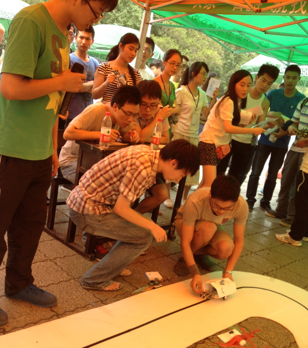 5月30日下午,明德广场中央搭制的帐篷里,一辆辆造型各异的机器车沿着地面KT板上的路线主动行驶,广场上来往的师生纷纷驻足观赏,这是我校第四届智能机器人大赛的总决赛现场。38支晋级决赛的队伍正在激烈比拼,机械工程与自动化学院党委书记毛正强、校团委副书记易宇峰和现场300余名同学一起观看了比赛。 比赛现场:精彩激烈 扣人心弦 参赛队伍将智能车放置在跑道的起点,智能车的车头传感器采集前方道路信息,传输给控制系统,控制系统指令动力系统按照相应的转速、角度运动,一辆智能车完成整个跑道的时间就是它的跑时成绩。每支参赛队有1-3名选手,它的成绩由三部分组成:智能车跑时成绩、技术应用的先进性、外观设计的新颖性。 赛场上弥漫着紧张的气息,一辆辆外形独特的机器车开始循着比赛黑线前进,有的摇摇摆摆顺利走向终点,有的半途偏离轨道不幸离场,有的一路狂奔奋勇争先。每当有黑马出现,以风驰电掣的速度冲向终点,观众们都难以抑制心中的情感,大声尖叫,报以热烈的掌声。 2010年至今,由机械工程与自动化学院团委、机器人足球协会组织的智能机器人大赛已经举办了四届,规模影响越来越大。本届比赛从3月份开始宣传,共有来自机械、汽车、电气等学院的128支队伍报名参赛。4月至5月,机械工程与自动化学院的王强副院长、李炜老师对参赛队伍进行了专业知识方面的培训。5月19日和5月26日,大赛分别举行了预赛和复活赛,共有38支队伍进入了决赛。 比赛幕后:艰辛付出 收获喜悦 2009级机械设计制造及其自动化专业的胡雷同学是第一次参加智能机器人大赛,他说,刚刚学习了相关的专业课程,现在能将专业知识应用于智能机器车的制作,感到很充实。他还特意把智能车设计成龙的形状,“龙”赛车是他大学里制作的第一个智能机器,也是他机器人梦想的开始,付出了很多心血。 限于专业知识水平,进入决赛的队伍绝大部分是高年级学生,但是仍然有几组大一学生组成的队伍参赛。2012级机械设计制造及其自动化专业的王晓探同学就是其中一员,他说,报考机械设计制造及其自动化专业就是冲着机器人来的,他的梦想是能设计出自己的机器人。虽然才大一,当智能机器人比赛的消息开始宣传时,他立刻就决定报名参赛。经过老师的培训,他也利用课余时间恶补单片机、PLC、传感器、车辆设计等方面的知识,在设计制造期间,节假日也很少休息。谈到自己制作的机器车,虽然进入了决赛,王晓探感到还有很多不满足的地方,他表示以后还要认真学习,弥补技术上的不足。 注重学生科技活动 提高实践教学效果 机械工程与自动化学院重视学生的课外科技活动,把它作为实践教学的一个重要环节来抓。智能机器人比赛中的机器车就是学生学习了单片机、PLC、数字图像处理等课程后,利用书本知识动手实践的一个成果。学院从各个方面支持学生科技活动项目的开展,本次智能机器人大赛,学院党委书记毛正强、院长王进戈亲自到场指导,副院长王强担任指导教师和裁判长。 机械工程与自动化学院把课外科技活动作为抓学风建设的一个突破口,通过多种途径引导学生动手实践,以此培养他们的学习兴趣和综合能力。近几年,学院涌现出张宇涵、庞程、田璐等一大批具有突出创新能力的优秀学生。截止今年5月,学院本科生以西华大学名义获得授权的实用新型专利就有10项。 |