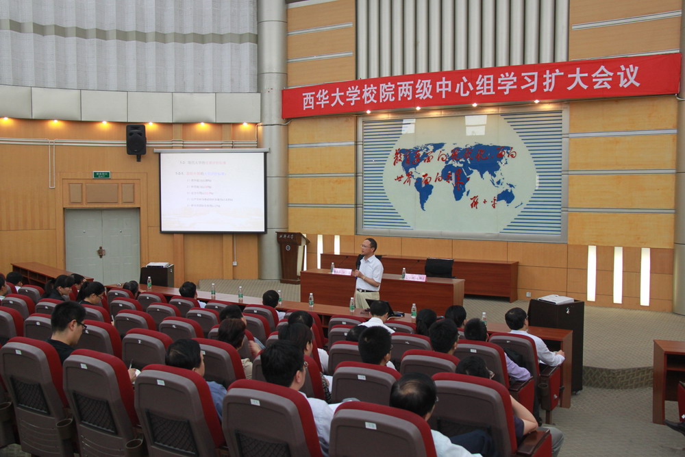 5月17日下午2:30,我校校院两级中心组学习扩大会议在四教报告厅举行。校长孙卫国以“学术卓越与学校发展”为题,给大家带来了一场精彩的报告。学校全体党委常委、校级干部、党委委员;副处级及以上中层领导干部;教务处、研究生部、科技处科级干部;教授、学校教学督导团成员、老教授协会领导小组成员参加了本次大会。会议由校党委副书记王小林主持。 链接: