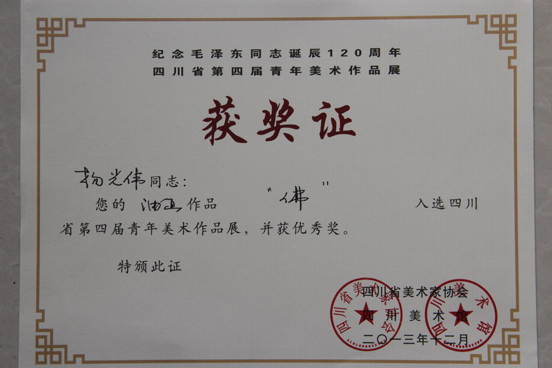 近日,第四届四川省青年美术作品展评选揭晓,我校艺术学院美术系副教授杨光伟油画作品《佛》获优秀奖。 本次作品展旨在推进四川美术的大发展大繁荣,在“实现伟大中国梦,建设美丽繁荣和谐四川”精神指导下,反映青年美术创作面貌,倡导艺术创新多样化;体现时代精神和持续弘扬四川美术悠久传统,鼓励省内青年美术家多出精品力作。 据悉,第四届四川省青年美展是我省最高级别综合性美术大展,不仅为青年美术家们搭建了展示才华和热情的重要舞台,更是一次普通大众与美术作品亲密接触的艺术盛宴,反映了当代四川美术的新面貌、新特点。