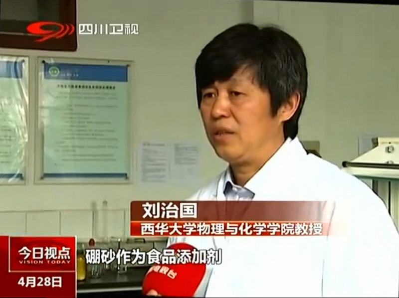 近日,我校物理与化学学院化学系刘治国教授带领学生进行了在食品中添加化学物质硼砂的实验,并在4月28日四川卫视《今日视点》节目 “硼砂事件”追踪新闻播出。