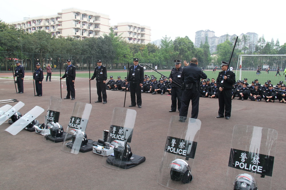 近日,为进一步加强学校安保工作,提高校内安保人员处置校园突发事件应急能力,为全校师生员工营造一个和谐稳定的校园环境,学校新购置了警用电瓶巡逻车、防暴头盔、防暴盾牌、防暴钢叉等部分安保设备和器材,并举行了防暴演习。