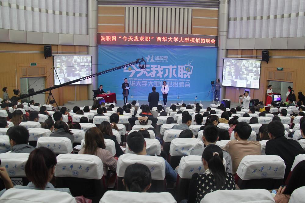 “我叫罗林川,来自管理学院,今天我的求职目标是苏宁易购。”身着黑色西装、白衬衣,戴着边框眼镜的男生自信满满,一上台就吸引了评委们的目光。10月17日,学校在四教报告厅举办了“今天我求职”大型模拟招聘会,9名“求职者”和来自2014届、2015届的300余名西华学子到现场参加了本次活动。 “今天我求职”大型招聘会活动现场 据悉,由于2013年的“史上最难就业季”,让2013届的毕业生们经历了一段艰难的就业历程,为了让2014届、2015届的毕业生向难就业“SAY NO”,让同学们及早定位、顺利就业提供更多的帮助和指导,西华大学就业指导中心联合淘职网开展了此次活动。来自6家企业的嘉宾代表:蓝海基业成昆区域总经理胥杰先生、苏宁易购西南地区运营负责人尹小璐先生、宇辉人才市场营销总监赵周亮先生、美迪教育集团总经理熊智娟女士、申蓉汽车HR负责人郭晓宁女士、新航建筑设计设计总监崔崧先生作为职业导师出席了此次活动。我校招生与就业处处长阮永生,招生就业指导中心主任黄敏、副主任刘忠英参加了本次活动。 本次模拟招聘会分为简历PK晒、面向“位”来、指点迷津三个环节。简历PK晒是由六位面试官对参赛的简历进行审阅投票,最终得票最高者获胜,并邀请面试官对参赛简历进行点评,提出建议。美迪教育集团熊智娟女士提到,希望求职者通过自我评价展示出一个立体的自己。蓝海基业胥杰提出,希望从简历上能看到面试者参加社会实践后取得的成果。这些宝贵的建议让在场的学生明白了自己简历存在的缺点和不足,并进一步了解到作为面试者应该呈现什么。紧接着,活动进入面向“位”来和指点迷津两个环节。9名面试者们依次上台参加模拟面试,通过自我介绍、导师提问、导师建议、导师表决等环节决定面试者的去留。面试过程中,面试官们仔细聆听同学们的自我介绍,审慎地做出决定,并真诚地给予意见。 职业导师与“求职者”现场互动 我校的学生们在活动上表现得十分机智灵活,充满自信,导师们给予了高度地肯定。通过三个环节的比拼,最终,8位西华学子求职成功,在自己心仪的企业获得了理想的职位。 据悉,此次活动分为两大阶段进行,第一阶段是在9月22—27日进行选手选拔和培训,并最终选拔出了9名选手参加今天第二阶段的决赛。为了更好地帮助同学们了解自己的职业性格,更好地实现自己的求职目标,学校还邀请了淘职网运营总监杨帆航、蓝海基业区域总经理胥杰等对同学们进行面对面的指导。学校积极地为毕业生搭建平台,让学生能够学会展示自己,勇于推销自己,提升自身职业能力和个人素质,对学生起到了一个正面引导与激励的作用。
