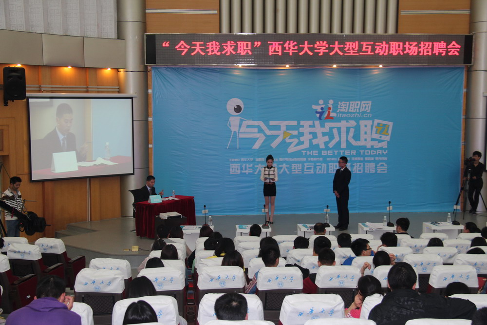 “你简历上的照片蘑菇头显得你呆萌呆萌的,怎么一上来给我的感觉完全不一样呢?” “你笑容僵硬死板。”“你很有耐心。” “向一个心仪的男生推荐你自己,你会怎么让他接受你?” 这是4月10日下午,学校在四教报告厅举行的第二届“今天我求职”大型模拟招聘大赛上参赛选手与职业导师们上演的精彩 “对决”。 “职来职往,前途宽广”中国教育频道播出的大型求职节目《职来职往》,是求职者心中理想的求职现场,很多求职者在这里找到了心仪的岗位并收获达人老师中肯的意见。为帮助同学们找到理想的工作,我校联合淘职网在四教报告厅成功举办第二届“今天我求职”大型模拟招聘大赛,将真实的《职来职往》搬到了校园里。 罗丹时尚教育赵一璐女士、环球互易集团杨闯先生、蓝海基业集团闫嘉庆先生、双虎家私张勤先生、第四城阳玫女士、巨美培训学校李睿先生、淘职网运营总监杨帆航先生作为职业导师应邀出席了本次活动。 求职现场:精彩、真实 职业导师、灭灯器、职业分析师、主持人……四教报告厅俨然就是一个小型的《职来职往》现场。本次模拟招聘会分为简历PK赛、面向“位”来、指点迷津三个环节。 在简历PK赛中,由6位职业导师对10位面试者的简历做出评判,并且给出自己的意见和建议,排名最后的两位选手将被淘汰,无缘参加下面的两轮比赛。 在面向“位”来环节,8位面试者依次上台进行自我介绍、导师提问、职业考量,通过的面试者将有机会留在台上并且可以对留灯的导师提出自己的问题,选择中意自己同时自己也心仪的企业。 “你简历上的照片蘑菇头显得你呆萌呆萌的,怎么一上来给我的感觉完全不一样呢?”第四城阳玫看着求职现场头顶浅浅短发,戴着一副黑边框眼镜,身着黑色西装,步伐沉稳的卢华斌同学一脸惊奇地问道。卢华斌回答说:“因为这是一个正式的活动,是求职现场,我的形象必须要与这里符合。”…… “你笑容僵硬死板。”“你很有耐心。”“向一个心仪的男生推荐你自己,你会怎么让他接受你?”……求职现场参赛选手与职业导师们上演了精彩的“对决”,选手们积极展示自己,认真回答导师问题,职业导师也认真提问,并给出自己中肯的意见。 指点迷津环节由职业分析师杨帆航对台上每一位面试者的表现作出点评,并提出建议。本次求职活动,我校共有六名求职者求职成功,并获得聘书。经济与贸易学院2011级许柏林、机械工程与自动化学院2011级衡杰、2011级应用物理专业王婧三位同学分获一二三名。 求职活动:必要、有用 此次活动已是我校成功开展的第二届大型模拟招聘求职活动,活动旨在加强我校就业指导力度,帮助学生在已经建立的自我求职和职业认知的基础上,感受企业真实招聘全过程,科学设计求职方案,果敢实施就业行动,为将来的就业做好准备。 关于此次的模拟招聘活动,许多同学表示,学校举办这样的活动十分有必要,它让同学们提前了解职场和社会需求,而不是乱投简历,盲目找工作,增强了求职意识和能力,同学们知道了该怎样准备求职,懂得了如何给自己一个明确的定位,对今后顺利就业帮助很大。 求职小贴士:中肯、有理 职业导师、双虎家私张勤先生说:“一份好的简历应当精简化、逻辑化、层次化、格式化,并且会附上自己的照片,突出自己的求职意向以及一些与自己应聘的工作有关的东西。” 第四城阳玫女士说:“求职一定要注意形象,不能单单用外表去 ‘欺骗’别人。” 学校就业指导中心主任黄敏说:“大学生要注重自身综合素质的培养,因为很多工作和专业知识的匹配度只有30-40%,而需要的非专业知识却很多,意味着学生的可迁移技能要提高。” 参赛选手卢华斌说:“要多了解外面的世界,增加社会经验,要知道自己为今天想要求得的职务做了哪些准备,拥有多少与之相关的经验。”参赛选手衡杰说:“在求职时一定要表现出大方得体。” 据悉,此次活动分为前期选手培训选拔和现场模拟求职决赛两大阶段。大赛让西华学子感受到了真实的招聘现场,并在真实的求职过程认识到自己的不足,收获了职业导师提出的中肯意见,为以后顺利就业必将起到积极的作用。