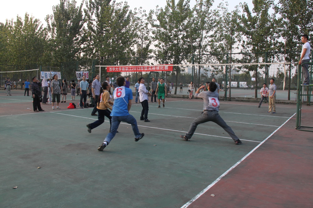 为丰富教职工文体生活,提高教职工身体素质,增强团队精神,达到全民健身的目的,10月8日下午5:30,由校工会组织的西华大学教职工2013年软式排球赛正式拉开了帷幕。 本次赛事将从10月8日持续到10月17日,参赛队伍以分工会为单位,共有21个分工会报名参赛。本次比赛第一阶段实行小组循环制,每个小组出线两支队伍进入第二阶段的交叉轮淘汰赛,最后将对获得前八名的单位进行奖励。