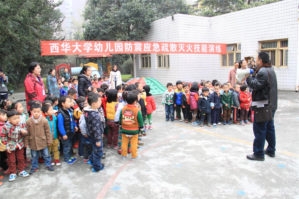 西华大学幼儿园举行防震应急疏散灭火技能演练
