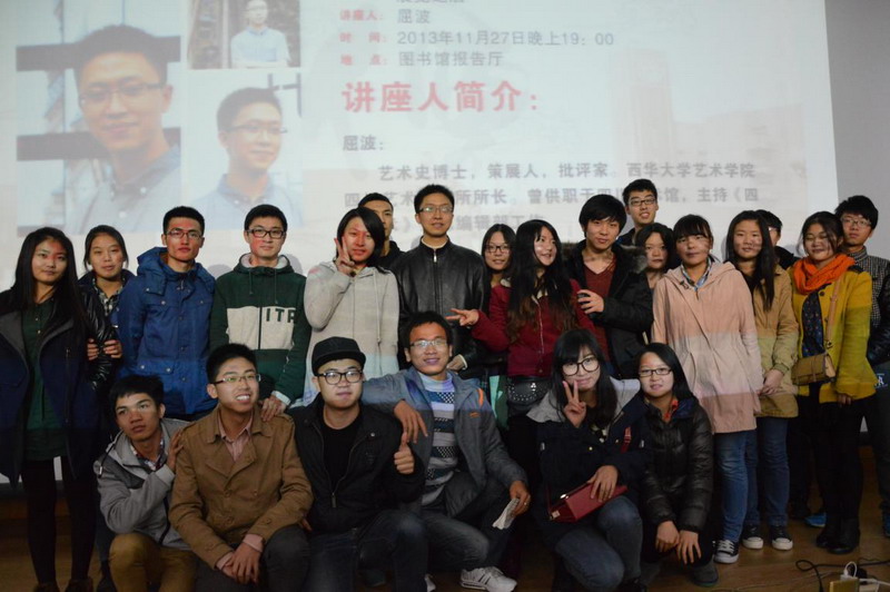 11月27日晚7:00,由艺术学院主办的西华讲堂在我校图书馆报告厅正式开讲。艺术史博士、艺术学院四川艺术研究所所长屈波担任此次讲堂的主讲人。艺术学院团委书记杨科和艺术学院部分师生聆听了此次讲座。