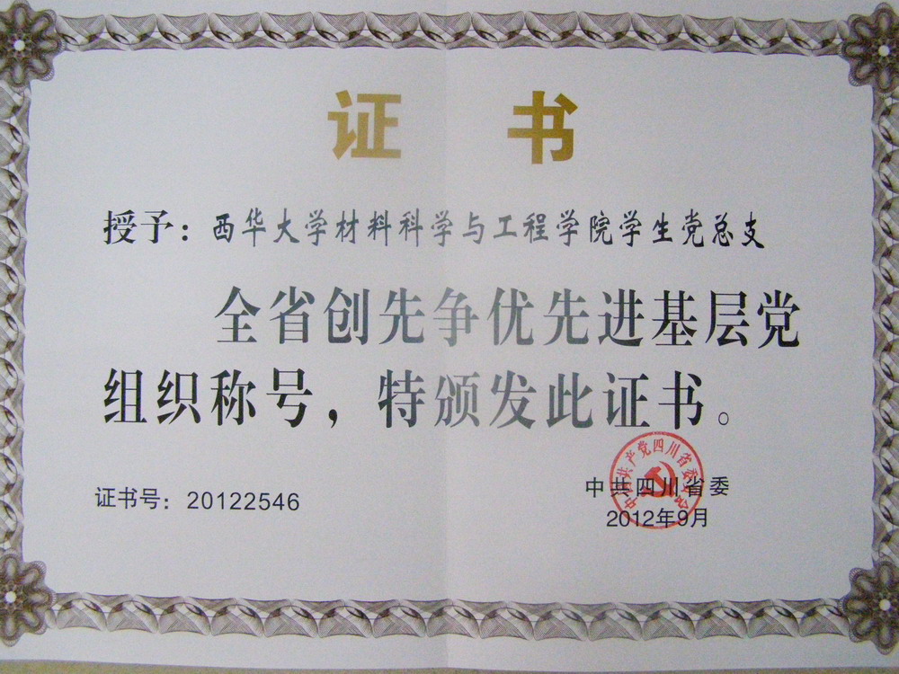 9月20日,四川省创先争优总结表彰大会在成都市金牛宾馆隆重举行。省委书记、省人大常委会主任刘奇葆,省委副书记、省长蒋巨峰,省政协主席陶武先、省委常委、组织部部长柯尊平、省委常委、成都市委书记黄新初等领导出席了会议。600个基层党组织、190名共产党员以及10个县(市、区)党委受到大会表彰。我校材料科学与工程学院学生党总支荣获“全省创先争优先进基层党组织”称号,并作为全省教育系统基层党组织获奖代表上台领奖。 会议首先由省委常委、组织部部长柯尊平宣读省委表彰决定。省委决定:授予成都市锦江区双桂路街道党工委等600个基层党组织“全省创先争优先进基层党组织”荣誉称号,授予肖文忠等190名共产党员“全省创先争优优秀共产党员”荣誉称号,授予成都市锦江区委等10个县(市、区)党委“全省创先争优活动先进县(市、区)党委”荣誉称号,追授菊美多吉等10名同志为“全省创先争优优秀共产党员”荣誉称号。接着刘奇葆、蒋巨峰、陶武先、柯尊平、黄新初、刘玉顺等省委领导分别为获得表彰的先进集体和优秀个人代表共计29人颁奖。 表彰会上,凉山州委书记翟占一、江油市市长马辉、国家电网四川电力成都高新区服务队支部书记刘源、崇州市桤泉镇党委书记、镇人大主席王成龙、仁寿县信访局局长吴菊芬等同志作为先进典型代表分别作了大会交流发言。 最后,省委书记刘奇葆作重要讲话。他首先对获得表彰的先进集体和优秀个人表示热烈祝贺。他指出,创先争优活动以深入学习实践科学发展观、推进“两个加快”为主题,以推动科学发展、社会和谐、服务人民群众、加强基层组织为目标,践行为民宗旨,服务人民群众,为进一步加强和改善党的建设积累了宝贵的经验,为在新形势下推动党的建设不断取得新的更大成效提供了有力依据。他强调,要始终把人民富裕幸福作为党和政府的全部工作根本目标,在造福人民的实践中具体体现党的先进性和纯洁性,以创先争优新成绩迎接党的十八大胜利召开。 全省教育系统在本次创先争优活动中获得表彰的先进集体和个人共计15个,其中我校材料科学与工程学院学生党总支荣获“全省创先争优先进基层党组织”称号,这是我校基层党组织首次获此殊荣,在受邀上台领奖的全省29名代表中,材料学院学生党总支书记郭忠林作为全省教育系统基层党组织获奖代表上台接受省委领导的颁奖。 我校材料科学与工程学院学生党总支在校、院党委的带领下,以学生党建工作为龙头,所属9个学生党支部在2010至2012年创先争优活动中涌现出了一大批优秀学生干部和先进党员,他们在促进学校校风、学风、考风建设和学生党建工作中作出了表率,充分发挥了基层党组织的战斗堡垒作用,2011、2012年分别被评为“西华大学先进基层党组织”荣誉称号。