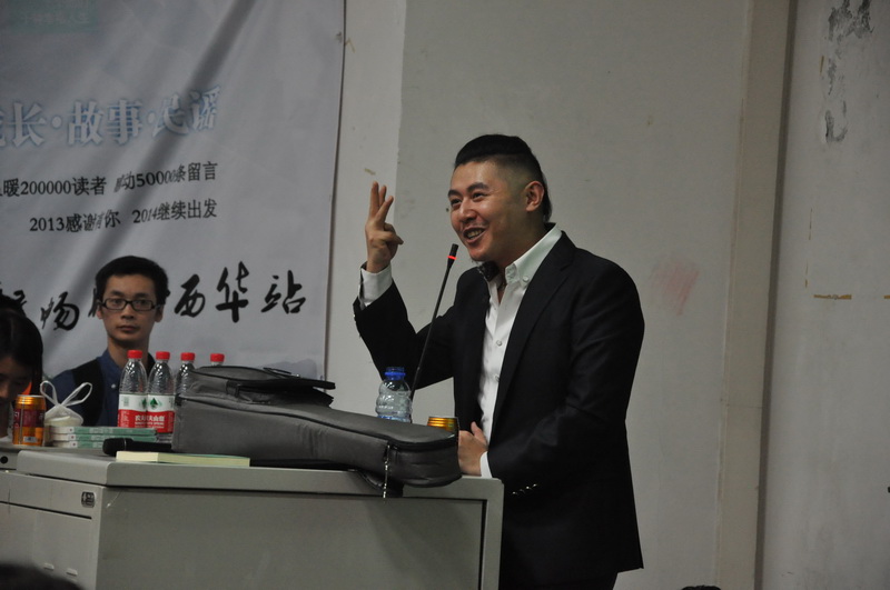 4月22日晚7:00,由能源与环境学院和西西弗书店联合举办的大冰“百城百校畅聊会西华站”在我校成功举行。这次畅聊会的主角是山东卫视主持人、民谣歌手、背包客、畅销书作家——大冰,他和大家一起分享了他的“成长·故事·民谣”。