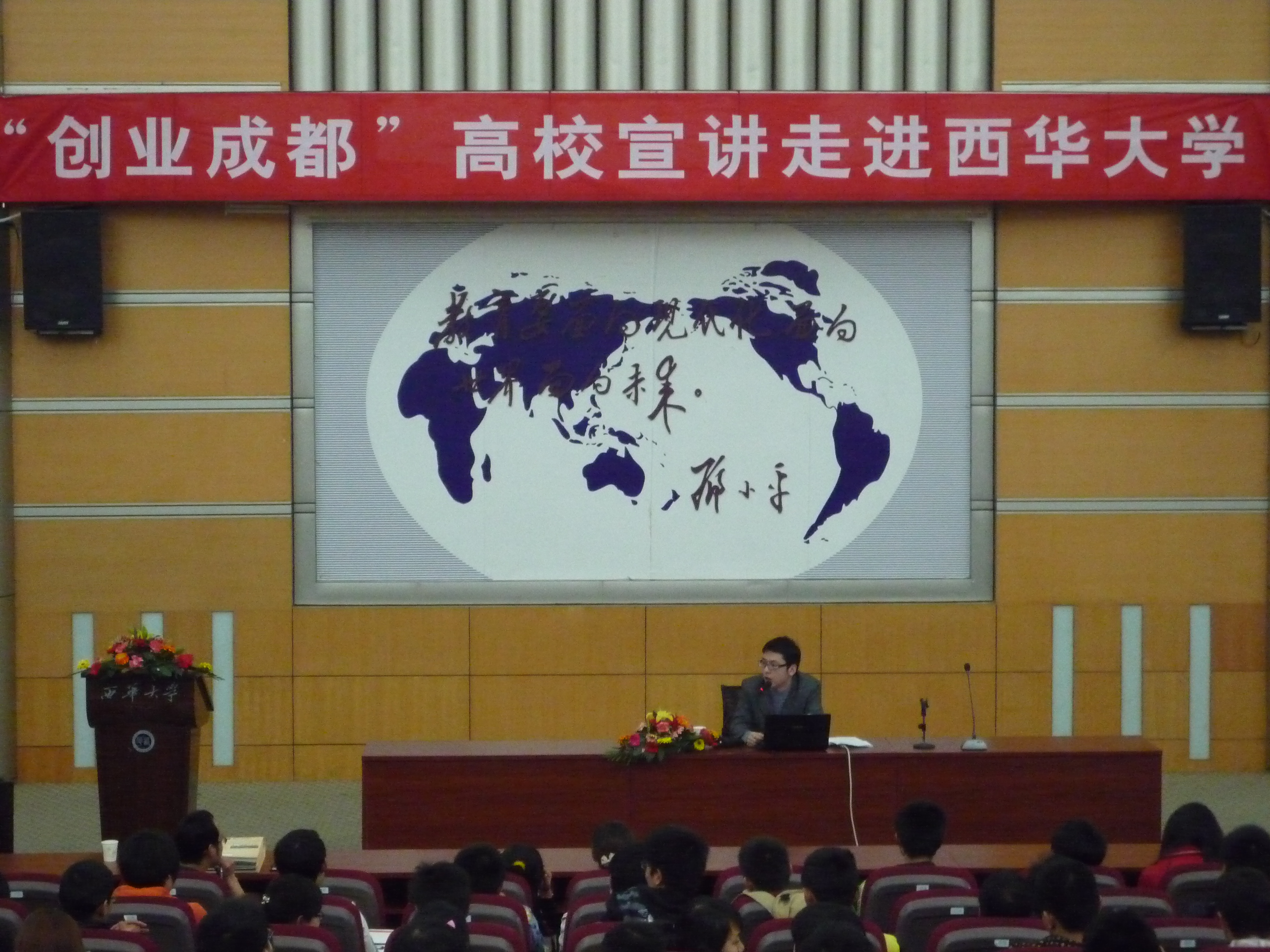 讲座中,胡蓝老师就成都市对大学生创业的相关扶持政策进行了讲解,并介绍了成都各个区县大学生创业园的发展情况。接着,胡老师围绕什么是创业、创业园形态是怎样的、有了创业点怎么办、入园的企业发展如何等四个方面进行了阐述,针对性地讲述了大学生创业的相关问题和注意事项,并通过分析大学生创业相关案例指导学生们创业。 胡老师建议大学生不要盲目地放弃学业而去创业,而要注重积累,包括资金、技术和社会关系等方面,为自己创业打下良好的基础,以争取得到成都市大学生创业扶持的帮助。讲座结束后,同学们踊跃提问,胡老师逐一耐心解答,让同学们对创业理念有了更深入的认识。 创业讲座现场 |