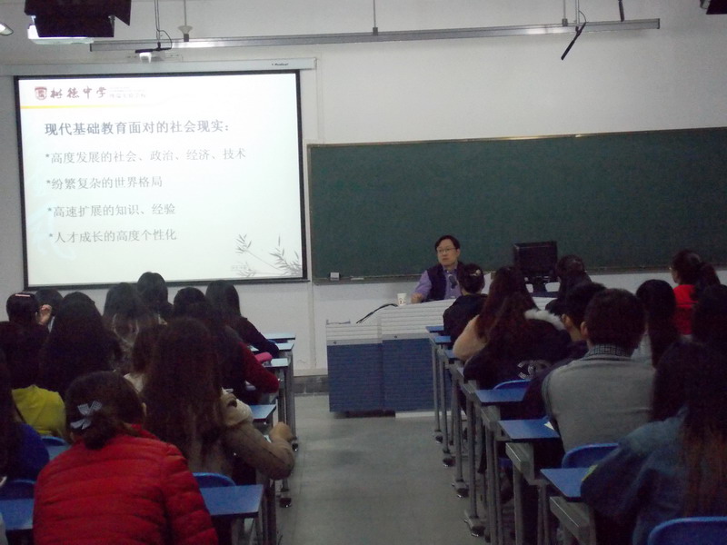 应人文学院邀请,4月25日下午,成都树德中学博瑞实验学校校长、四川师范大学硕士生导师、中学特级教师林毅先生莅临西华,为我校师生带来了一场以“现代基础教育背景下的教师素质要求”为题的精彩讲座。人文学院汉语言文学专业教育方向和外国语学院英语专业教育方向的同学聆听了讲座。人文学院院长谢应光教授主持讲座。