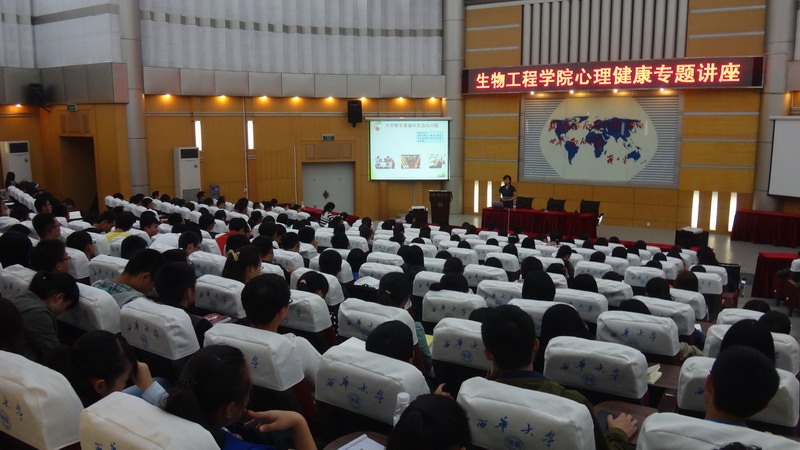 9月21日晚,受生物工程学院邀请,我校心理健康服务与研究中心魏赓博士在四教报告厅为学院2013级全体新生开展心理健康教育专题讲座。新生辅导员周强、陈凌以及学院心理健康指导老师也聆听了讲座。