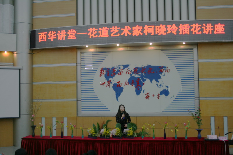 2月24日下午2点,著名插花艺术家柯晓玲老师在四教报告厅为我校同学带来了一场生动精彩的花道艺术讲座。外国语学院部分教师和日语系同学共计200多人到场聆听了讲座。