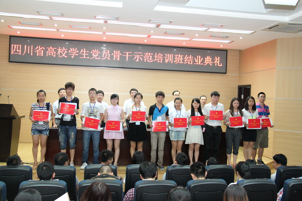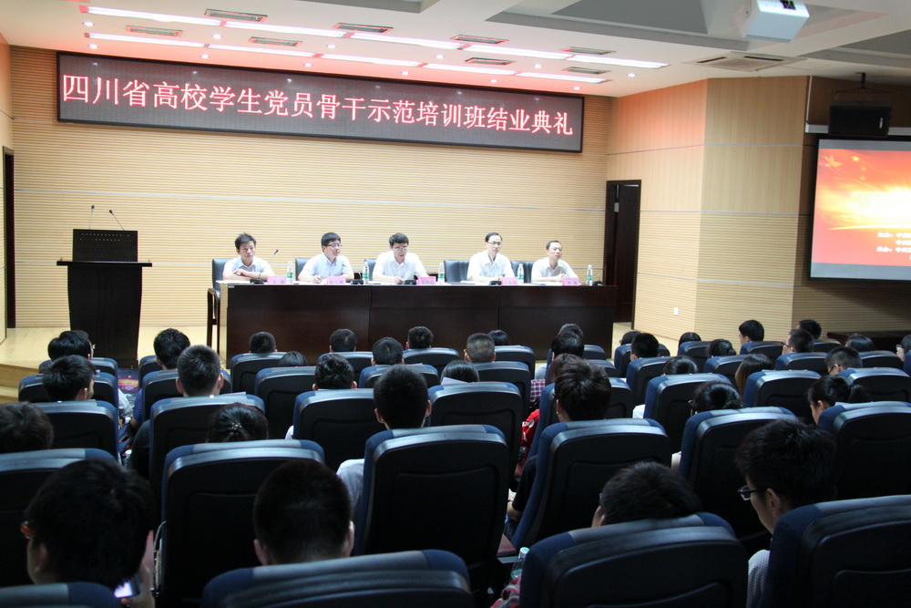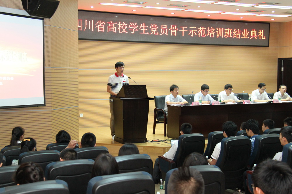7月10日下午2:30,四川省高校学生党员骨干示范培训班结业典礼在西华大学行政楼报告厅举行。经过为期三天紧张而愉快的培训学习,学员们圆满地完成了各项学习任务。 省委教育工委、省教育厅组织干部处处长丁念友,西华大学党委副书记王小林,校党委组织部副部长罗海,学生工作部部长徐元彬、副部长王强出席结业典礼,培训班全体班主任、参训学员等200余人参加了结业典礼。学生工作部部长徐元彬主持结业典礼。 丁念友处长指出,本次培训班呈现出四大特点:一是领导高度重视,大力支持;二是组织管理严密,服务保障周到;三是同学们综合素质高,表现优秀;四是培训内容丰富多彩,培训效果令人满意。同时,他对同学们今后的学习和生活提出了希望,希望同学们坚持学习,书写美丽人生;学以致用,发挥示范引领作用;珍惜友谊,团结一致,共同进步;志存高远,坚守理想,努力奋斗。 王小林副书记在讲话中谈到,本次示范培训班是省委教育工委贯彻落实党的十八大精神、全国全省高校党建工作会和习近平总书记五四重要讲话精神的重要举措。通过本次培训,进一步提升了全省高校学生党员骨干的党性修养、业务能力和综合素质,增强了高校基层党组织教育党员、服务师生和引领成长的能力。同时,大家也结识了各院校的新朋友,加强了省内高校大学生之间的联系、加深了彼此间的友谊,达到了增长才干、开拓视野、提高本领的目的。他讲到,我校将在省委教育工委领导下,认真总结和借鉴此次培训的经验,向各兄弟院校学习,促进西华大学学生党员骨干培训工作程序化、制度化、规范化,增强学生党员骨干的创造力、凝聚力和战斗力,发挥学生党员骨干在引领大学生刻苦学习、团结进步、健康成长的带头示范作用。 四川大学建筑与环境学院张霄,成都理工大学广播电视编导专业朱娜,成都航空职业技术学院校团联合会主席樊洁,成都艺术职业学院学生会主席余雯四们学员代表分别作了发言。他们回顾三天以来的学习经历讲到,通过此次培训,更深入地了解了党章的修改和完善,学会了将个人梦融入中国梦,在实现中国梦的过程中绽放青春风采。他们表示,要在今后的党建工作和学习生活中,充分发挥共产党员的先锋模范带头作用。 与会领导为各参训学员颁发结业证书。随后,结业典礼在雄壮的国际歌声中结束。 据悉,本次示范培训班内容丰富,形式多样。7月8日上午,省委党校党史党建教研部马锦燕教授作了题为“十八大党章解读”的专题讲座;下午,同学们在体育馆参加素质拓展训练,既锻炼了个人能力,又提升了团队意识。9日上午,省委组织部宣讲团成员、电子科技大学邓淑华教授在图书馆报告厅作了题为“中国梦,四川梦”的专题讲座;同学们还开展了十八大精神和党章知识竞赛。10日上午,成都先导药物开发有限公司董事长兼首席执行官李进博士为学员们作了大学生就业、创业典型经验交流的专题辅导;成都信息工程学院管理学院副院长沈登学教授作了题为“学生干部团队建设及领导力培养”的专题讲座。