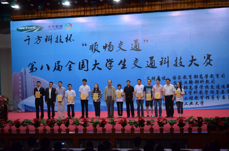 5月26日,“千方科技”杯第八届全国大学生交通科技大赛在北京落下帷幕,我校交通与汽车工程学院交通工程专业2010级阳杰、赵亚州、张渝、侯金宏等4名同学组成的团队在张诗波老师的指导下,其参赛作品《基于PC-CRASH的公路避险车道安全性评价仿真建模》获得三等奖。 本次比赛以“畅通交通”为主题,由国家教育部高等教育司、交通运输部科教司支持,教育部高等学校交通工程教学指导分委员会和交通科技大赛组委会组织,教育部高等学校交通运输与工程学科教学指导委员会主办,北京工业大学承办,北京千方科技集团有限公司独家冠名赞助。本次大赛共有86所大学参赛,198件作品参加选拔,经过专家组网络评审,来自51所学校的80件作品通过选拔进入决赛,并于5月25日在北京工业大学建国饭店进行了现场展示和答辩。 全国大学生交通科技大赛是一个以大学生为主体参与者的全国性、学术型的交通科技创新竞赛项目,目前已走过了八年历程,大赛已被列入教育部大学生竞赛资助项目。据悉,第九届全国大学生交通科技大赛将于2014年在哈尔滨工业大学举行。