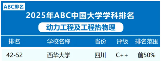 6月4日,CNUR再次发布《2025年ABC中国大学专业排名:能源与动力工程》,在全国开设此专业的183所高校中,我校能源与动力工程专业跻身全国前50%行列,在ABC中国大学专业排名中被评为B级,位列四川省内高校第二,彰显出学校在能源动力领域的快速进步和区域影响力的显著提升。