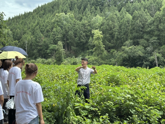 在驻村干部的带领下,实践队员走进中药材、酿酒专用高粱种植基地和蚕桑养殖基地,参与桑叶采摘、田间除草、科学施肥等农事活动,体验农业生产的辛勤和不易,锤炼吃苦耐劳的精神。食品与生物工程学院实践队员还结合专业知识,提出科学合理的种植建议和技术改进方法。