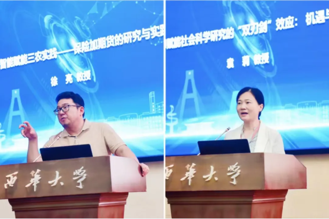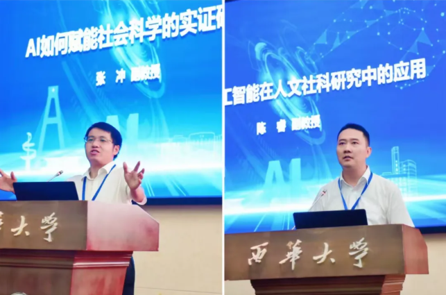 聚焦“AI赋能社科学术研究”主题,四川大学法学院教授徐继敏,西南财经大学工商管理学院教授徐亮,四川大学公共管理学院教授袁莉、李桂华、杨峰,电子科技大学马克思主义学院副教授张冲,西华大学文学与新闻传播学院副教授陈睿分别作了以《生成式人工智能技术运用与宪法规范的发展》《人工智能赋能“三农”实践——保险加期货的研究与实践》《AI赋能社会科学研究的“双刃剑”效应:机遇与挑战》《AI赋能与赋能AI:社会科学研究的价值跃迁》《AI时代的公共图书馆数字包容内涵研究——基于<互联网宣言>的解读》《AI如何赋能社会科学的实证研究》《生成式人工智能在社会科学研究中的应用》为题的报告。