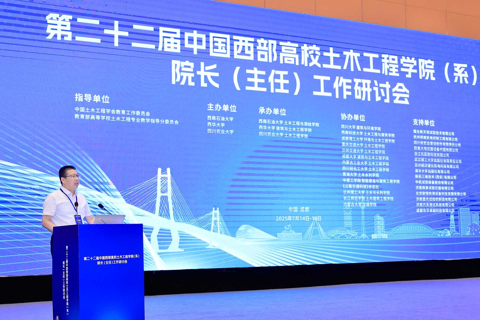 7月14日—16日,由西南石油大学土木工程与测绘学院、西华大学建筑与土木工程学院、四川农业大学土木工程学院联合承办的“第二十二届中国西部高校土木工程学院(系)院长(主任)工作研讨会”在成都召开。来自中国东西部地区高校近300位土木工程院校院长(主任)及土木工程专业教指委委员等专家学者齐聚一堂,共同探讨新时代背景下土木工程专业的发展路径与创新实践,分享人才培养经验,推动土木工程专业的建设与发展。