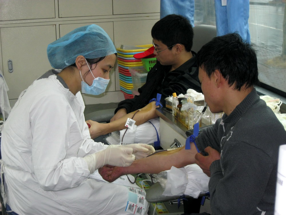 填报个人资料及健康问卷、登记电脑资料、量血压体检、验血,同学们在一批志愿者的帮助下有条不紊地进行着献血前的准备工作。如果检查顺利,就可以登上献血车,献血过程大约10分钟,休息片刻后便可以拿到献血证。因为提前从微博上看到了无偿献血的资料,不少同学都提前做好了准备,晚上休息好,提前吃午饭,保持良好的精神状态。有的学院以团支部活动的形式,把同学们号召到献血车前,自愿献血;有的同学更是把同寝室的同学和好朋友都叫上,大家一起献血,相互拍照留念。