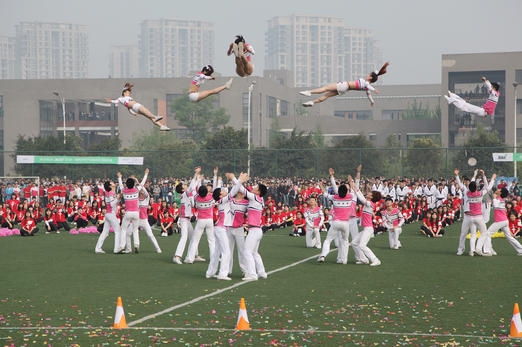 当团体操表演完成之后,西华大学啦啦操队奔跑进会场中央,惊艳亮相。他们用高难度的啦啦操动作表演,为大家带来了一场精彩的视觉盛宴。随后,我校高水平运动中心跆拳道代表队也上场大秀专业风采,与啦啦操队一起,共同展现了我校高水平运动中心的明星风采,表演惊艳全场。